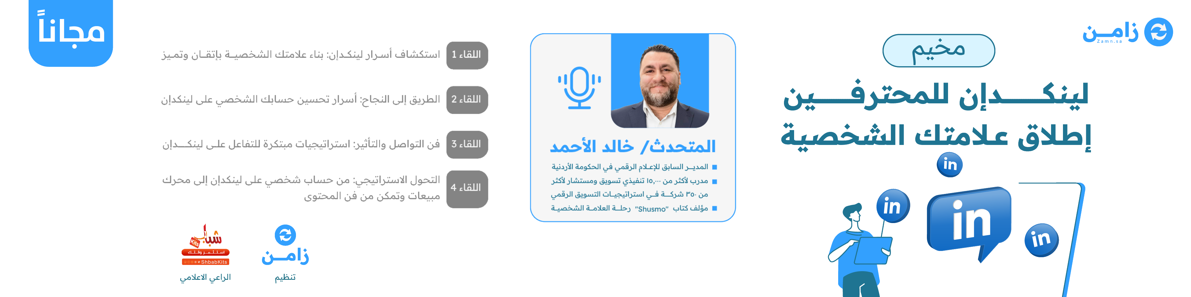 سلسلة لقاءات عن (لينكد إن للمحترفين: إطلاق علامتك الشخصية) مقسمة على أربع لقاءات أسبوعية.