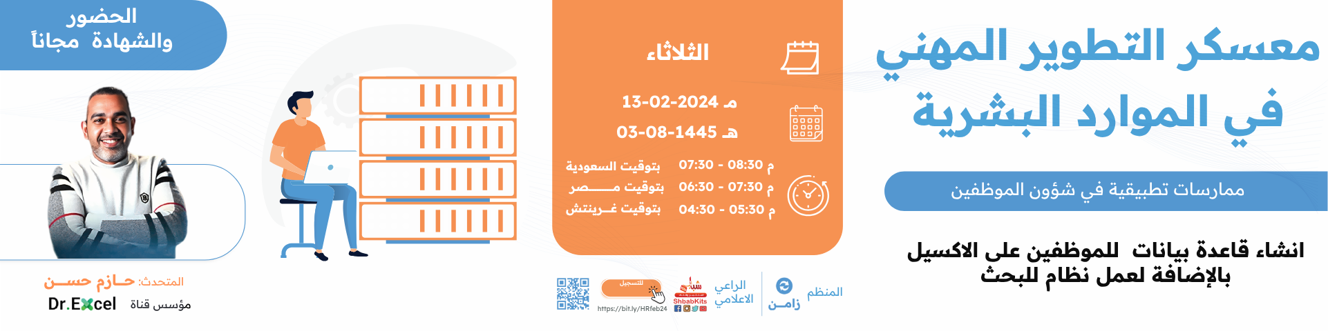 سلسلة لقاءات عن التطوير المهني في الموارد البشرية مقسمة على ثلاث لقاءات أسبوعية تقدم في شهر فبراير2024.